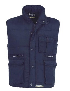 Gola alta. Cavas ajustáveis. Dois Bolso no peito para telemóvel com aperto em velcro.