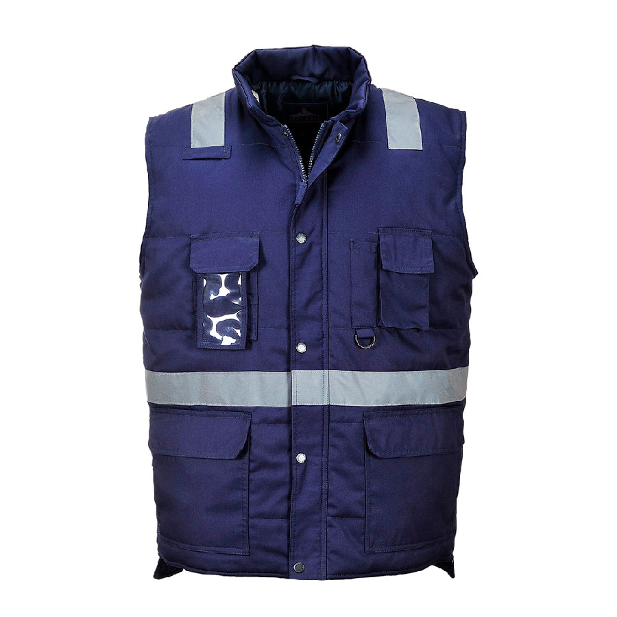 Este novo estilo de colete possui fita reflectora de alta visibilidade. Bolsos multifunções proporcionam abundância de armazenamento, enquanto o acolchoado adicional mantém o utilizador aquecido.