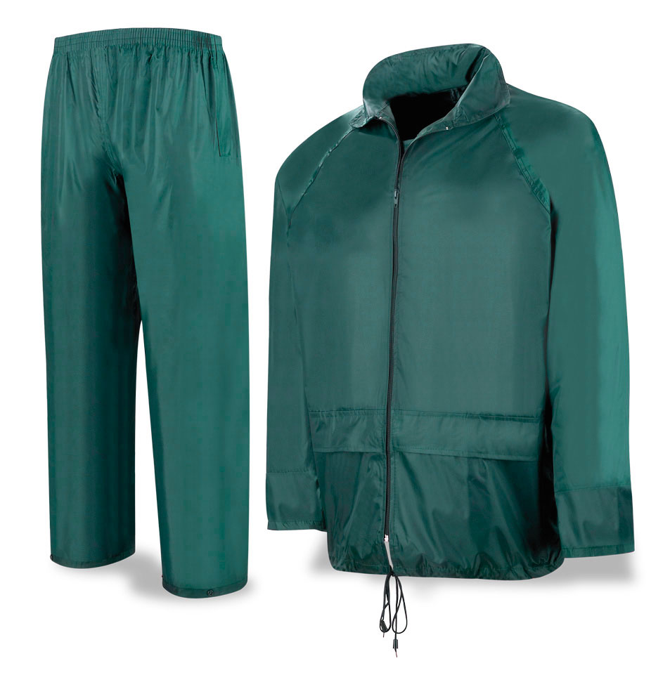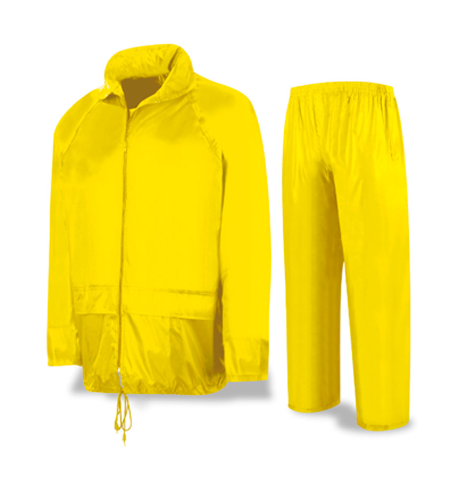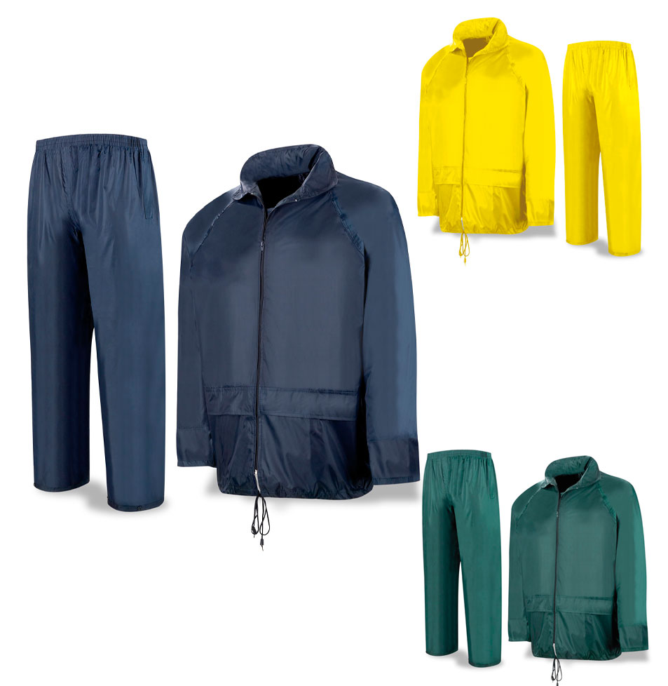 Fato Impermeável Azul em nylon 100% sobre recobrimento de PVC de 0,18mm de espessura.